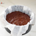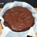 La masa final debe ser como la de la masa de un brownie, con cuerpo, densa, pero fácil de verter en el molde. Así que procede a ello, encamisa un molde redondo con mantequilla o con papel vegetal, y vierte la masa en su interior. Dale unos golpes firmes sobre la mesa de trabajo para que expulse las burbujas de aire y la superficie quede lisa.