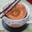 Introduce la taza en el microondas y programa 2 minutos a 800 watios. Pasado ese tiempo retira la taza del microondas y haz la prueba del palillo para ver si el bizcocho está cocido. En caso de que no esté hecho, pon 20 o 30 segundos más.