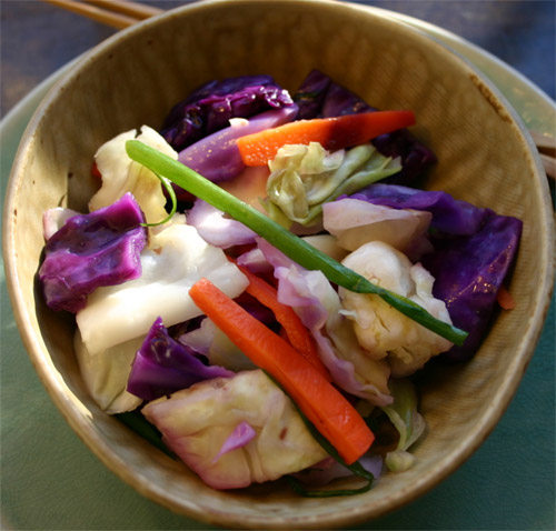 - Someter alimentos crudos a la acción del agua hirviendo, al natural, con sal o con vinagre, y luego refrescarlos y escurrirlos o simplemente escurrirlos, antes de cocerlos realmente. Este blanqueo tiene varias finalidades diferentes: reafirmar, depurar, eliminar el exceso de sal o la acritud, facilitar el pelado, reducir el volumen de las verduras.