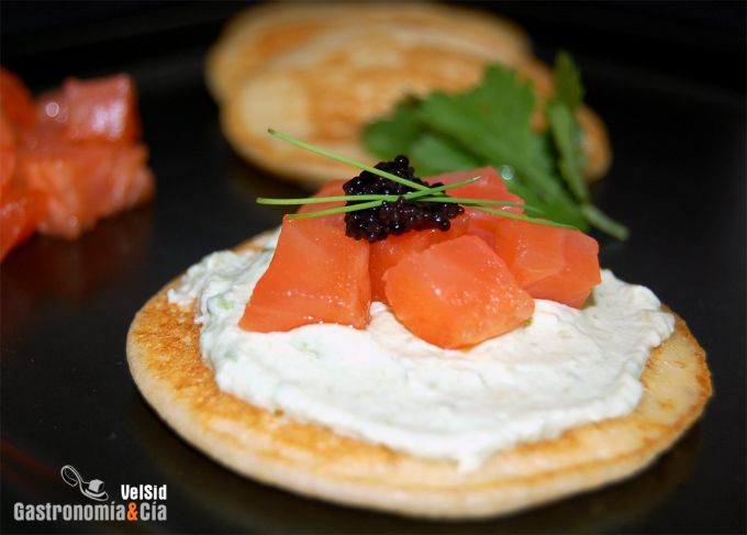 Como os comentábamos en la receta de los blinis, es mejor hacerlos momentos antes de servirlos, pero en caso de tener que organizar una comida o cena y tenerlos que preparar con antelación, será ideal darles un golpe de calor en el horno convencional.