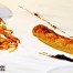 Disponer en el plato el atún rojo ahumado, el picadillo acompañado del sorbete de membrillo y la espuma de Bloody Mary de palo cortado.