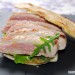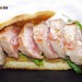 Es un bocadillo, pero como se puede apreciar en las fotos el pan es mínimo, lo que buscamos es aportar un ligero acompañamiento al secreto de cerdo a la parrilla, una carne muy gustosa y sabrosa que aderezamos con una salsa de pera y rábano picante. La forma de presentación es para ofrecer una tapa o un aperitivo suculento y exquisito.