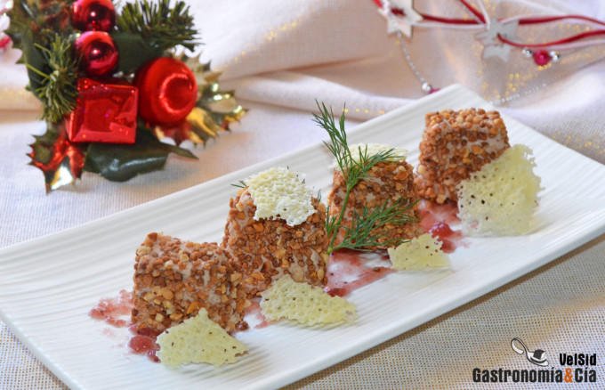Para hacer estos bocaditos de foie gras utilizamos el denominado ‘bloc’, una preparación en la que el hígado está cocinado y listo para consumir. Es una de las presentaciones del foie gras más cómodas para hacer elaboraciones sencillas con resultados exquisitos. En este caso, lo rebozamos con almendra caramelizada, que además de aportar un contraste de textura aporta un contraste de sabor, y también condimentamos con una de nuestras especias favoritas, la pimienta de Jamaica. A continuación podéis tomar nota de la receta, esperamos que lo disfrutéis.