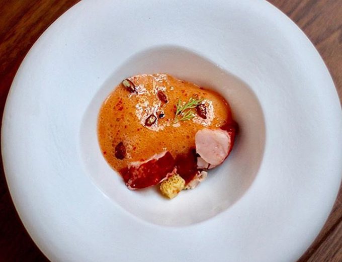 La nueva aportación a la sección de Recetas de los Chefs nos lleva a Valencia, a la cocina de Ricard Camarena Restaurant, reconocido con una estrella Michelin (aunque deberían ser más) y admirado por su carrera profesional y su cocina. En la foto podéis ver el Bogavante con su meunière de Ricard Camarena, uno de los platos que mostró en el escenario de la última edición de la Cumbre Mundial de la Gastronomía, Madrid Fusión 2018, congreso que se celebró hace apenas un par de semanas.