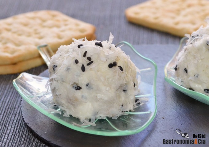 Una vez formadas las bolitas de queso, ponlas en un plato, cúbrelas y déjalas reposar de nuevo en el frigorífico antes de servir.