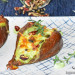 Gratina los boniatos rellenos en el horno a 200º C hasta que el queso esté fundido y dorado, y si quieres gratinarlos en la freidora de aire, estarán listos en unos seis minutos a la misma temperatura.
