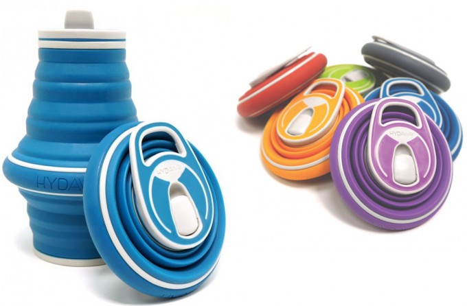 Hydaway es una alternativa a las botellas de agua tradicionales fabricadas con plástico, se presentan como una solución para reducir la fabricación de botellas convencionales y por tanto el gran número estos envases desechables que terminan en los vertederos a pesar de que sean reciclables. Se trata de una botella de agua plegable con un sistema tipo acordeón, se puede llevar perfectamente sin que apenas ocupe espacio en una bolsa, en un bolsillo, etc.