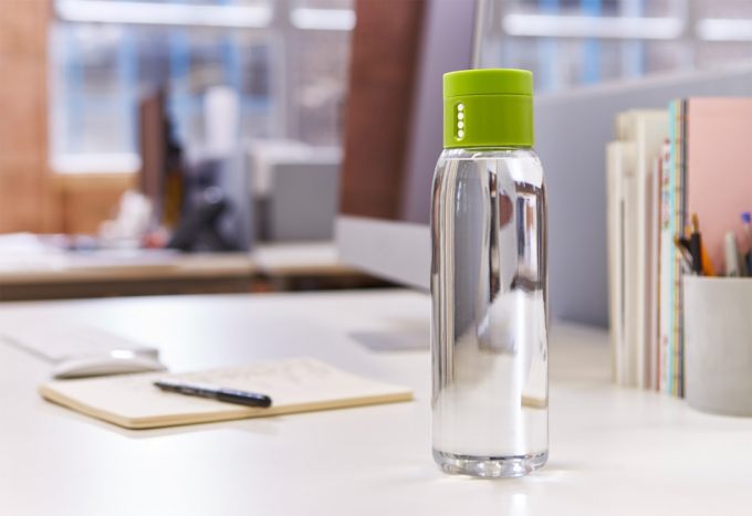 Pues bien, la botella que podéis ver en las fotos, diseñada por Joseph Joseph, tiene un cometido muy sencillo, aunque ya os lo hemos adelantado, consiste en tener un control sobre la cantidad de veces que se ha bebido su contenido, de este modo se puede calcular el agua que se ha bebido. La capacidad de la botella es de 600 mililitros, así que, si al cabo del día se ha rellenado cuatro veces y se ha bebido toda el agua, se sabrá que se han tomado 2’ 4 litros de agua.