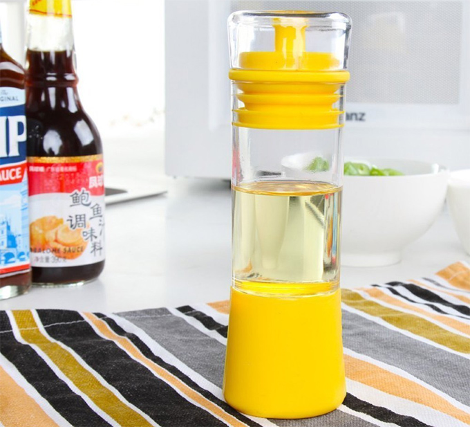 La botella para dispensar aceite, que tiene una altura de unos 17 centímetros y un diámetro de 5’5 centímetros, está fabricada en material plástico apto para uso alimentario y silicona. Todas las piezas de las que se compone se pueden desmontar fácilmente para su limpieza, y aseguran que está hecho a prueba de golpes y que cierra perfectamente para que no se produzcan derrames en caso de llevar la botella a un picnic o barbacoa.