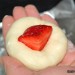 Vuelca la masa en la mesa de trabajo y córtala en porciones del tamaño de un huevo aproximadamente, forma bolas con ellas. Limpia los fresones, retírales el pedúnculo y según el tamaño que tengan, córtalos del tamaño de un bocado.