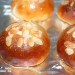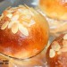 Cubre los brioches con un paño y deja levar de nuevo hasta que doblen su volumen. Precalienta el horno a 180º C. Antes de introducir los brioches en el horno, píntalos con un huevo batido, corónalos con unas láminas de almendra y espolvorea azúcar al gusto.