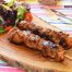 Tras el reposo, ensarta la carne en las brochetas, si son de madera conviene mojarlas antes en agua fría. Puedes poner la cantidad de pavo o pollo que desees en cada brocheta, según cómo y cuántas quieras presentar, y como ves en el vídeo, no es nada complicado, sólo hay que procurar que la carne quede bien recogida.