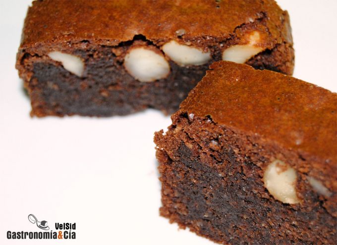 Aunque la receta de brownie que tenemos como básica en nuestra cocina es una delicia, también nos gusta disfrutar de algunas variantes, no sólo este Brownie de chocolate y nueces de macadamia, también conquista a los más golosos el Brownie de chocolate y queso, el Brownie de chocolate al ron con crema de coco es un postre exquisito, el Brownie de chocolate blanco es sorprendente y también podemos disfrutar con el Brownie integral de chocolate y avellanas. A vosotros ¿por cuál os apetece empezar?