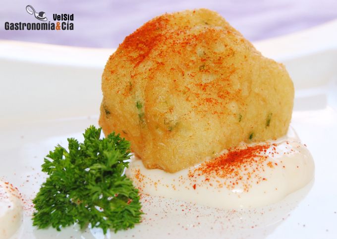 Servirlos como aperitivo o como entrante, siempre será un punto a favor del cocinero, los buñuelos de bacalao sólo suelen crear buenas sensaciones en el paladar, incluso a quienes no son muy amigos de comer pescado. Se pueden tomar solos o acompañados de distintas salsas, como en este caso, un falso all i oli o mahonesa de ajo, también nos gusta servirlos con una salsa romesco o con una salsa de pimientos del piquillo, ¿y a vosotros?