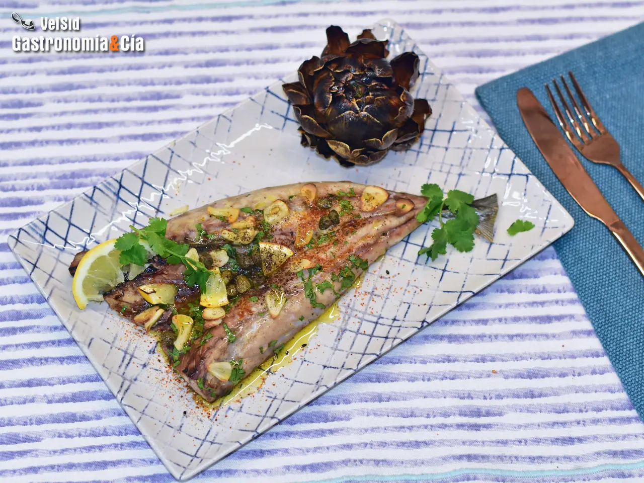 Sirve la caballa con ajo, limón y alcaparras en el plato y acompaña de una guarnición de verduras al gusto. Termina espolvoreando un poco de shichimi togarashi o chile en polvo si quieres darle un toque picante, y con un hilo de aceite de oliva virgen extra. El resto es comer y disfrutar. ¡Buena cocina y buen provecho!