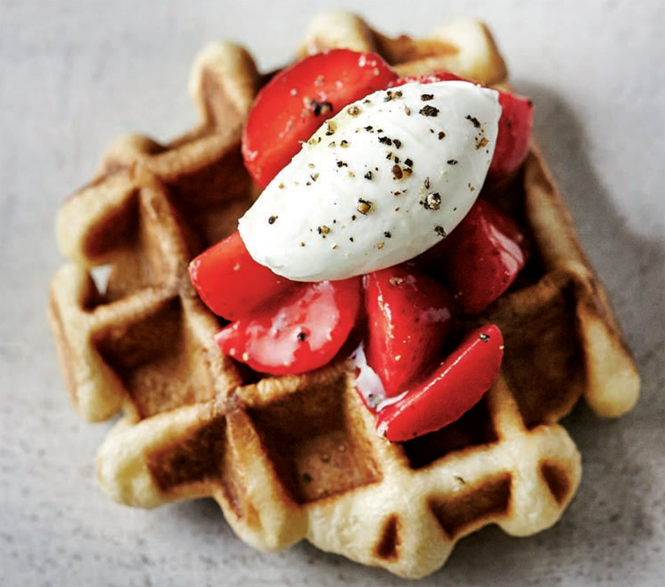 Batir los huevos con el azúcar hasta obtener una textura de lazo. Añadir la nata y la leche. Fundir la cobertura a 45º C. y rebajarla con el aceite de oliva virgen extra. Finalmente, verterlo encima del batido de huevos y agregar los sólidos tamizados. Reposar 12 horas a 4º C. Remover con varilla para sacar todo el gas y cocer en latas de 60 × 40 a 160º C durante 12 minutos.