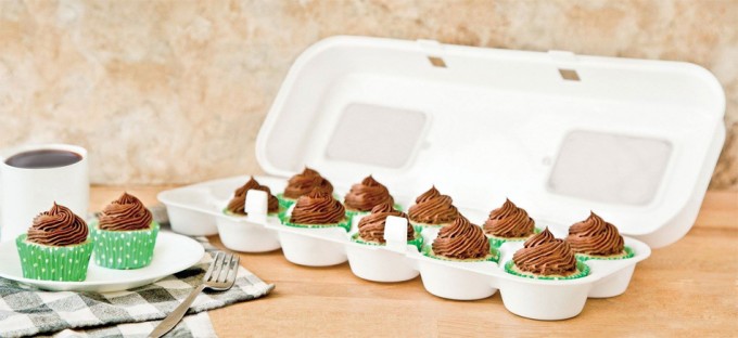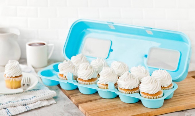 Se trata de la Cupcake Carton, una caja tipo huevera para cupcakes que de momento está disponible dos colores, en blanco y en azul. Están fabricadas en material plástico resistente y apto para alimentación (libre de BPA), y como la mayoría de las hueveras de verdad, tiene doce cavidades.