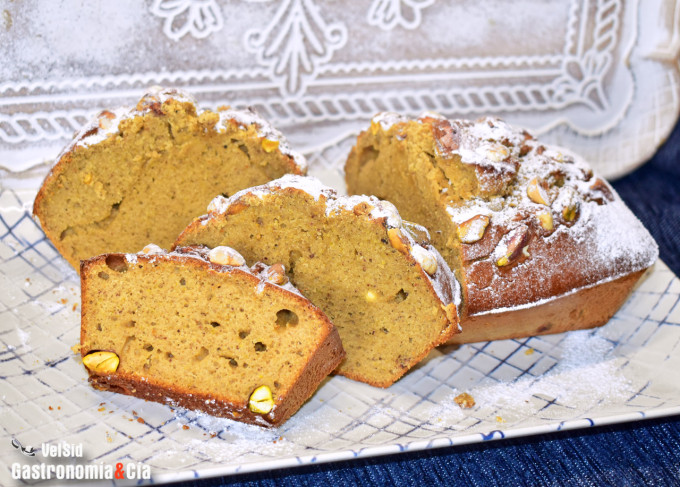Para presentar el cake o bizcocho de avellanas y pistachos, sírvelo en una fuente rectangular y si lo deseas, espolvorea con azúcar glas, canela, cacao en polvo… y el resto ya lo conoces, lo vas a gozar. ¡Buen provecho!