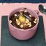 Vierte la masa del bizcocho en el molde y reparte encima los pistachos, las avellanas y un poco de eritritol rubio o azúcar moreno. Introduce el molde en el horno que habrás calentado arriba y abajo a 180º C y programa 30-35 minutos.