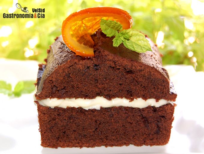 Sirve el Cake de chocolate relleno de mascarpone cortado en porciones, decora con una o dos mitades de naranja confitada y unas hojas de hierbabuena fresca. Prepárate para disfrutar y para que tus comensales te feliciten y pidan más. ¡Buen provecho!