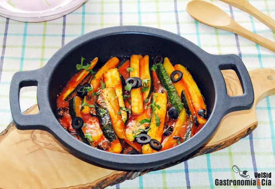 Hay distintas formas de hacer esta receta de calabacines a la niçoise, en este caso hemos hecho una salsa de tomate con un poco de ajo, cebolla y orégano, pero cuando los tomates están de temporada, en lugar de hacer una salsa los cortamos en gajos y los cocinamos poco, resulta un plato más fresco e igualmente sabroso. A continuación os explicamos cómo hacer los calabacines niçoise para servir como guarnición.
