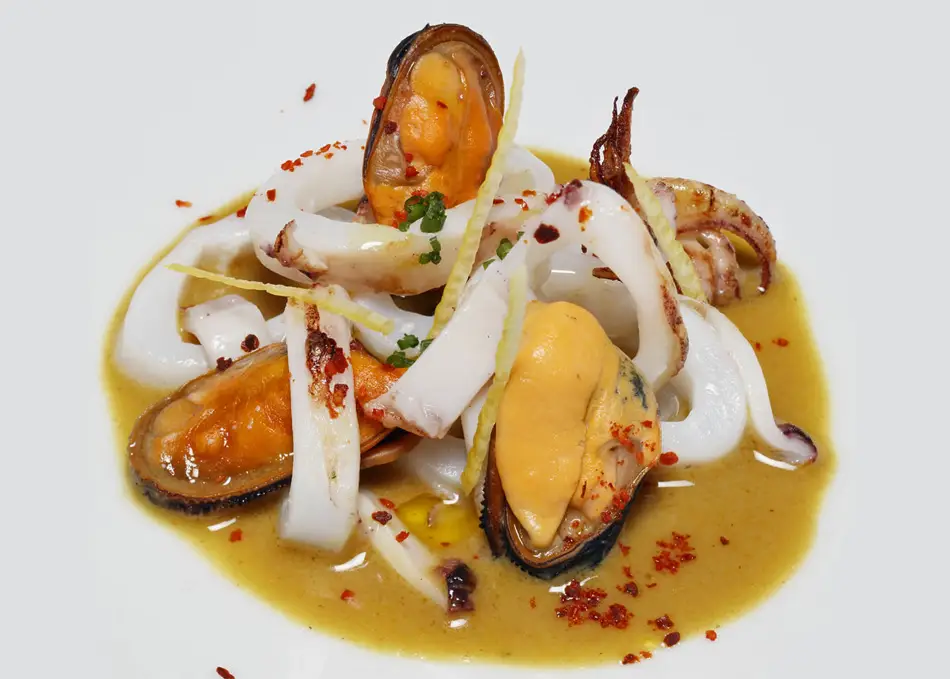 Han pasado ya unos años desde que estuvimos en el restaurante La Sirena de Mª Carmen Vélez, donde se puede disfrutar de una cocina en la que el producto del mar es protagonista, igual que lo son los guisos, las salsas, los arroces… es la cocina mediterránea en la que, de vez en cuando, también aparecen ingredientes y elaboraciones de otras culturas, como en el caso del plato que hoy tenemos en la sección ‘Recetas de los Chefs’, se llama Calamar y mejillones con salsa de curry.