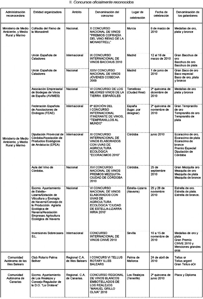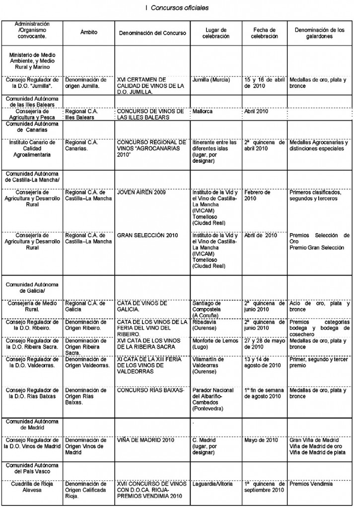 A principios de este mes, el BOE (Boletín Oficial del Estado) publicó el calendario de concursos de vinos 2010, se trata de un conjunto de certámenes en torno al mundo del vino que son organizados por el MARM (Ministerio de Medio Ambiente y Medio Rural y Marino), las Denominaciones de Origen, los Gobiernos autonómicos, los Consejos Reguladores, etc.