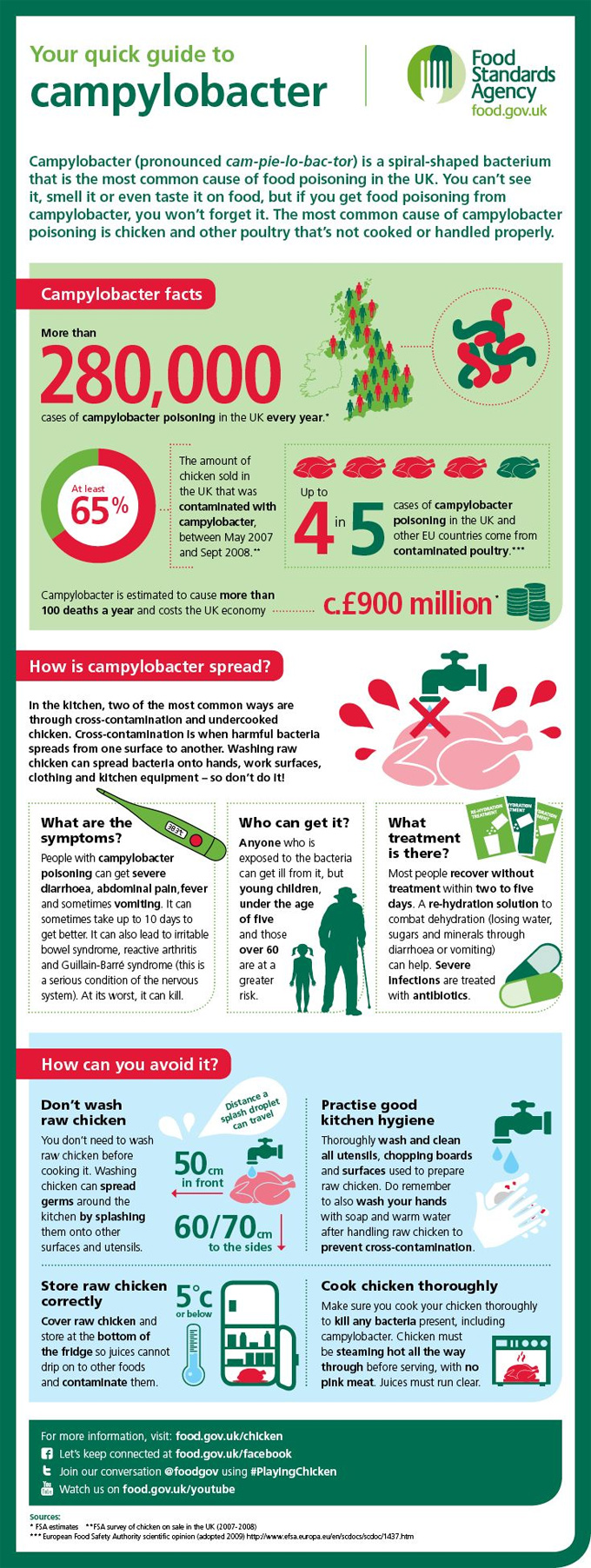 Según las cifras de los estudios que se han realizado para poner en marcha la campaña, un 44% de la población siempre lava el pollo antes de cocinarlo, algo que facilita la contaminación por Campylobacter a través de las manos, la superficie de trabajo, de las salpicaduras de agua, etc. Este género patógeno es la forma más común de intoxicación alimentaria en el Reino Unido, afectando a unas 280.000 personas al año. Según los estudios, cuatro de cada cinco casos de infección en seres humanos a través de la alimentación tienen su origen en las aves contaminadas por el bacilo indicado. Algunos de los síntomas al sufrir esta intoxicación alimentaria son dolor abdominal, diarrea y vómitos severos, en determinados casos puede causar problemas como el síndrome del intestino irritable o el síndrome de Guillain-Barré, un trastorno grave del sistema nervioso. En los casos más graves puede acabar con la vida de quienes son más vulnerables, niños menores de cinco años y personas ancianas.