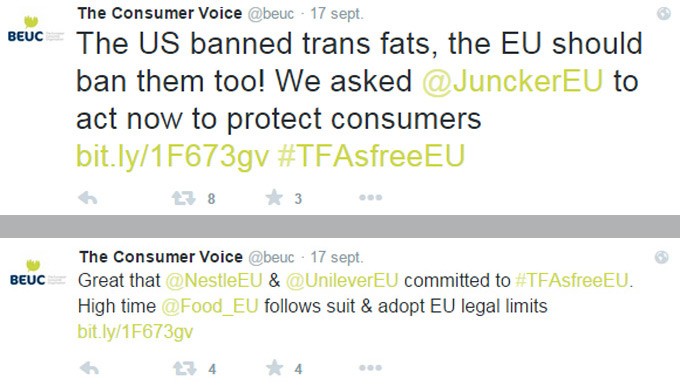 A través de la cuenta de Twitter de BEUC podréis conocer más detalles sobre la campaña contra las grasas trans en Europa.