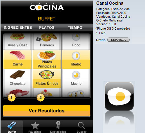 Canal Cocina en iPhone es una aplicación compatible con iPhone e iPod Touch y puedes descargarla a través de App Store. Por el momento, la valoración que han realizado los usuarios sobre el nuevo recurso en la red y de las nuevas tecnologías es muy buena, catalogándola como una de las mejores aplicaciones de cocina que se pueden encontrar en App Store.
