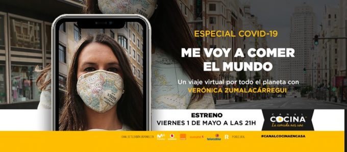 El pasado mes de abril no hubo estrenos en la programación de Canal Cocina, pero han estado trabajando para poder presentarnos un nuevo programa este mes de mayo que va ligado a la actualidad mundial, a la pandemia que ha paralizado el mundo, el próximo viernes 1 de mayo se va a estrenar una edición especial del programa ‘Me voy a comer el mundo’ que presenta la periodista Verónica Zumalacárregui.