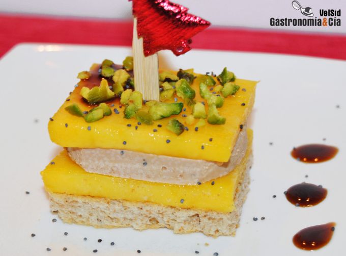 Si será interesante equilibrar los ingredientes, ya sabemos que el foie gras es muy graso, por lo que la fruta suavizará y refrescará el paladar sin restarle protagonismo. A nosotros nos gusta que el mango, al tener dos capas, sean un poco más finas que el foie, la base es una tostada de cereales que aporta la textura crujiente junto a los pistachos verdes, algo más tiernos.