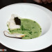 La crema de ortigas se acompaña, como ya hemos comentado, con unas láminas finas de pez mantequilla, que al ser un pescado de sabor muy neutro y fino, da mucho juego. Comentaba el chef andorrano le ha encantado descubrir este pescado con el que en la pasada estación hacía un carpaccio de pez mantequilla y trufa de verano. La parte de montaña de este plato se potencia con una lámina de boletus crudo, y la de río con un poco de caviar.