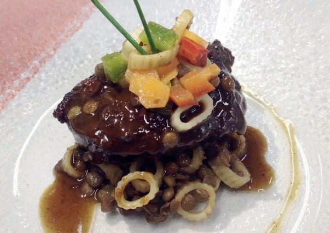 Hay que decir que la minestrone con la que se acompañan las carrilleras de cerdo es un tanto particular, no es la tradicional sopa de origen italiano, ya sabéis que consiste en una sopa de hortalizas finamente picadas con pasta pequeña. Íñigo Urrechu prepara una minestrone con pasta fresca, lentejas cocidas, manitas de cerdo… y todo ello va glaseado con el jugo reducido de la cocción de las carrilleras. Pero, para que explicar más, lo mejor es que leáis la receta del chef y toméis nota de los ingredientes para prepararlos y poneros el delantal, vais a conquistar a vuestros comensales.