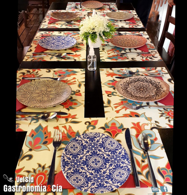 Antes de pasar a mostraros el menú que degustamos en este restaurante sefardí, os contamos que nos recibió amablemente su gerente, Jesús Guerrero, quien considera que para disfrutar de una comida nada mejor que conocer parte de la historia de los platos, de sus ingredientes, de su forma de cocinarlos… por eso, los camareros están totalmente preparados para explicarlo, y no sólo eso, Javier, que fue el camarero que atendió nuestra mesa, además de ilustrarnos en cada uno de los bocados, era capaz de provocar la necesidad de probarlo cuanto antes porque con sus descripciones casi podíamos saborear las especias y los sabores característicos de la cocina hispanojudía.