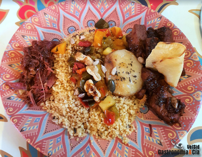 También había una cocina bien ejecutada en el Bacalao con verduras gratinado con alioli, y en el crujiente saquito de pasta filo relleno de lubina. Y el plato que no puede faltar para vivir una experiencia completa en Casa Mazal es el Cuscús, nosotros pudimos probar el cuscús de pato y el cuscús de confit de cordero, con sus verduritas, una verdadera exquisitez. Por cierto, también hacen cuscús sólo de verduras, de pollo al curry y de pollo harissa, la salsa picante.