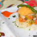 El Falafel con pan pita y salsa de yogur también satisfizo nuestro gusto por esta cocina (y despertó nuestras ganas de volver a hacerlo en casa, ¿ya lo habéis probado?). Por cierto, con el falafel también nos sirvieron un Gazpacho sefardí con sorpresa que estaba exquisito. No os contamos la sorpresa para que lo sea para vosotros también. Y pasamos a la degustación de platos de pescado, que fueron tres y no sabríamos decir cuál nos gustó más, o quizá sí, porque nos sorprendió muy gratamente el Salmón a la miel y mostaza, delicioso.