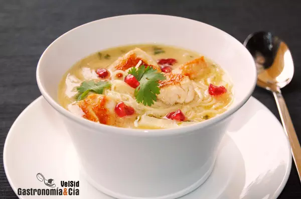 Una sopa inspirada en un Curry laksa, con leche de coco, fideos y pollo. Combina sabores picantes y dulces, es…