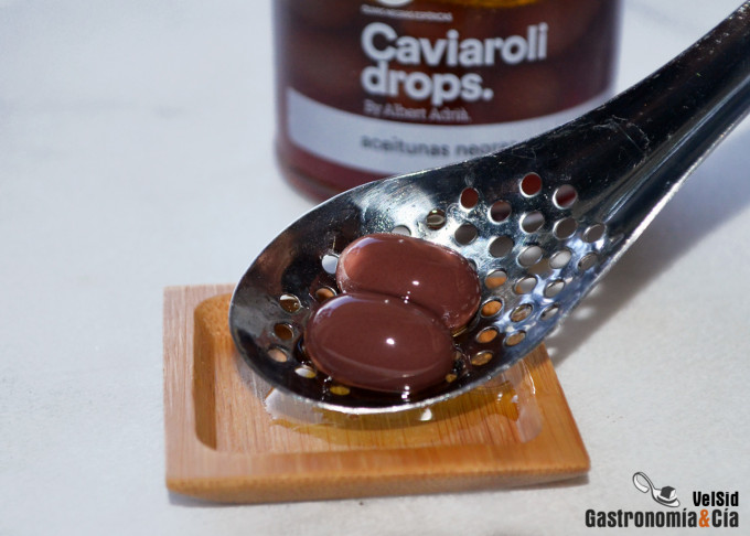 El caso es que hay que innovar, y por ello, Caviaroli y Albert Adrià han trabajado para conseguir la versión de las aceitunas esféricas con variedades negras, y de nuevo han conseguido un producto que a la vista parece lo que no es, y en boca sabe a lo que parece ser, o sea, que parecen aceitunas pero son esferificaciones, y saben puramente a aceitunas.