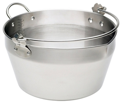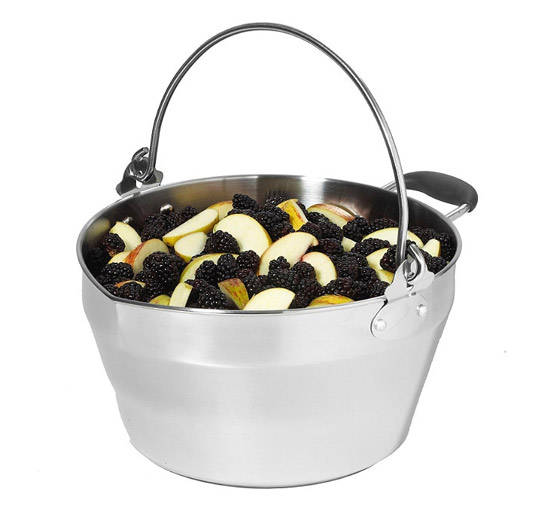 La cazuela para confituras que os mostramos tiene una capacidad de casi 9 litros, su base hace 20 centímetros de diámetro, y se ensancha en la parte superior de forma que provoca una adecuada y ligera cocción de los alimentos. Se trata de una cazuela pesada y resistente, fabricada en acero inoxidable con una base gruesa y la forma adecuada para la distribución uniforme del calor, siendo apta para todo tipo de fuentes de calor.