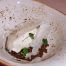 Poner una base de crumble de tomillo que nos aporta textura, grasa y un punto balsámico y aromático, colocar la cebolleta glaseada con el jugo, que nos dará un sabor intenso pero algo dulce y tostado, y cubrir con oxalis, que aportará acidez dando agua a la boca.