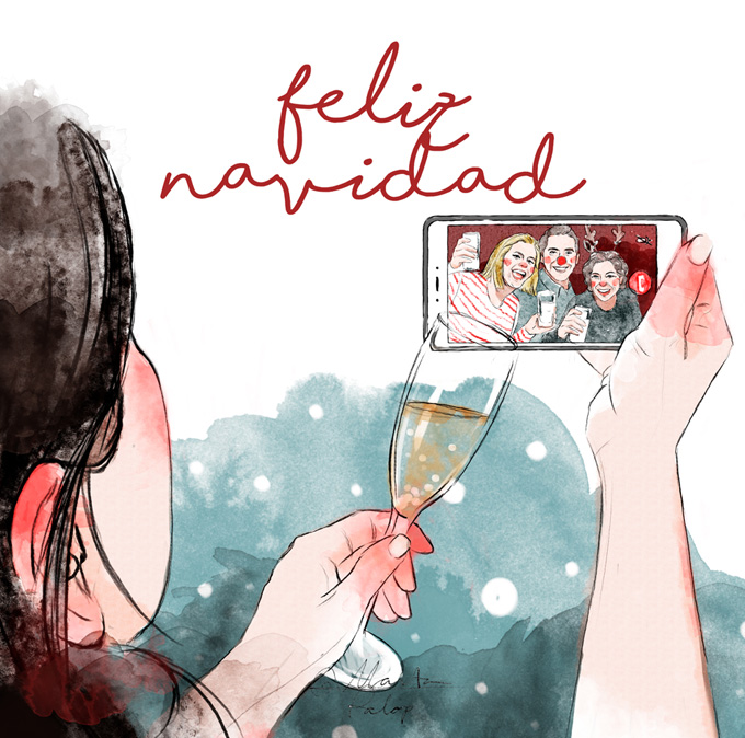 Así lo ha plasmado Marta Palop en su ilustración navideña, con un brindis que muestra una realidad a nivel mundial. Y con ella queremos desearos unas felices fiestas, además de animaros a que celebréis la Navidad aunque sea de forma distinta. Si lo más importante es la reunión familiar y este año no nos podemos juntar, estamos haciendo bien, no nos debe entristecer, sino enorgullecer, porque estamos evitando poner en riesgo a quienes más queremos.