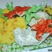 Además de ser un espectáculo a la vista, lo es al paladar, es un plato con varios componentes, combina varios sabores y en total equilibrio, un áspic de jamón, guisantes y germinados, papada de cerdo adobada, guisantes frescos, perrechicos, praliné de piñones y piñones… En cada cucharada se mezclan texturas y sabores que… hay que probarlo.