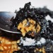 El plato final de El Poblet fue el Arroz ceniza, otro de los excelentes arroces del cocinero manchego. Nos pareció que no lo habíamos probado antes (bueno sí, por la mañana, en Gastrónoma, Carito Lourenço y Germán Carrizo impartieron un taller en el que elaboraron este arroz, os podremos pasar la receta, y una vez finalizado el taller lo probamos), pero haciendo memoria y revisando nuestras notas vimos que era una evolución del Arroz Senia tierno y meloso que tomamos en Dénia en 2010. Pues es un lujo la evolución y tener la posibilidad de volverlo a saborear en El Poblet, además de forma muy generosa. Nos encantó cuando Germán confesaba que le gustaba servir un buen plato de arroz en El Poblet, a pesar de haber comido varios platos antes, el plato se termina.