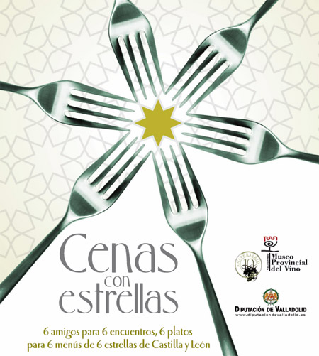 Bajo el título Cenas con Estrellas, se han presentado los encuentros gastronómicos organizados por la Diputación de Valladolid, el Museo Provincial del Vino de Valladolid y los restaurantes participantes, que son ni más ni menos que seis de los siete restaurantes de Castilla y León que lucen una estrella Michelin. Ya os lo adelantamos en el post 6 Estrellas Michelin, pero ha habido algunos cambios, como la incorporación del Restaurante Cocinandos de León que recibió la estrella en la última edición de la Guía Michelin 2010.