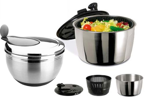 La variedad de centrifugadores de vegetales y ensaladas que hay es innumerable, los hay con cuerda, con manivela, con cuchillas que además cortan, con espiralizador, plegable… En cualquier caso, es un utensilio de cocina que ocupa mucho espacio a la hora de guardarlo porque es voluminoso, pero es casi imprescindible si queremos ensaladas bien lavadas y escurridas, que no queden encharcadas.