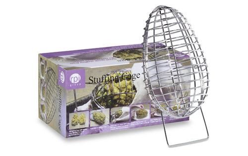 El cestillo para rellenar el pavo Stuffing Cage está fabricado en acero inoxidable, por lo que es un utensilio de cocina resistente al calor del horno, al lavavajillas… y también resistente en tiempo. Tiene una forma ideal para su función, se abre fácilmente para introducir el relleno y de igual modo se cierra.