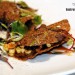 Termina con una lasaña de calabacín con maíz, setas y un símil de queso parmesano que también elabora con rejuvelac y piñones entre otras cosas (y que un congresista que tiene la oportunidad de probar, con dificultad de identificar el sabor como el de queso parmesano, aunque afirma que está rico). El chef Charlie Trotter argumenta que no añade vinagre porque éste cuece, pero sí añade cítricos, también cuece ¿no?