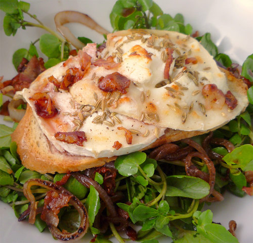 A mí me encanta la ensalada de chèvre chaud con brotes tiernos en primavera (en Francia lo llaman «jeunes pousses»). Pero no siempre es posible, claro. Me gusta ponerle un toque rúcula, y la vinagreta la hago con vinagre de frambuesa e incluso un poquito de miel.