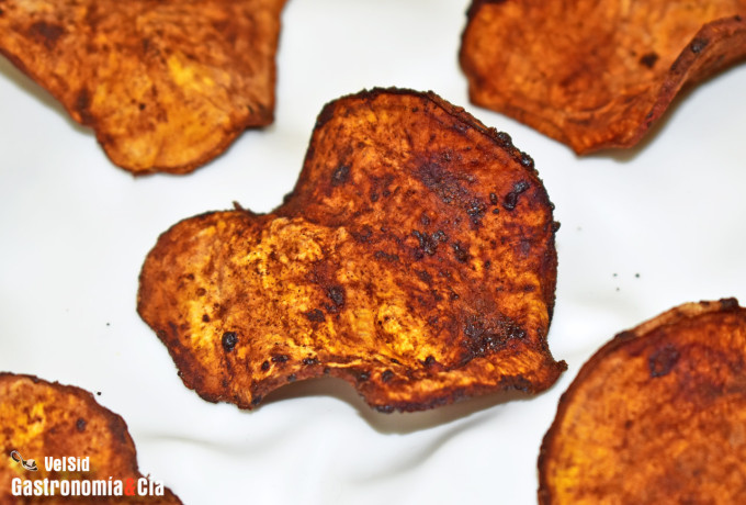 Si con el otoño habéis recuperado el consumo de boniato o batata (es que como ahora se encuentra todo el año en el supermercado, habrá quien desconozca cuándo es su temporada), vamos a recordaros que podéis hacer un delicioso picoteo, de esos que satisfacen la necesidad de comer algo crujiente y sabroso, hablamos de los chips de boniato cuya receta hemos compartido con vosotros, con la posibilidad de hacerlos en el horno o en la freidora de aire (airfryer).